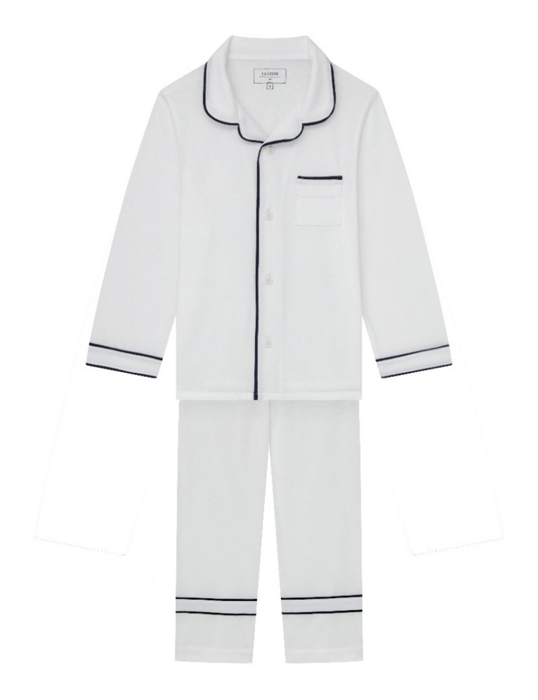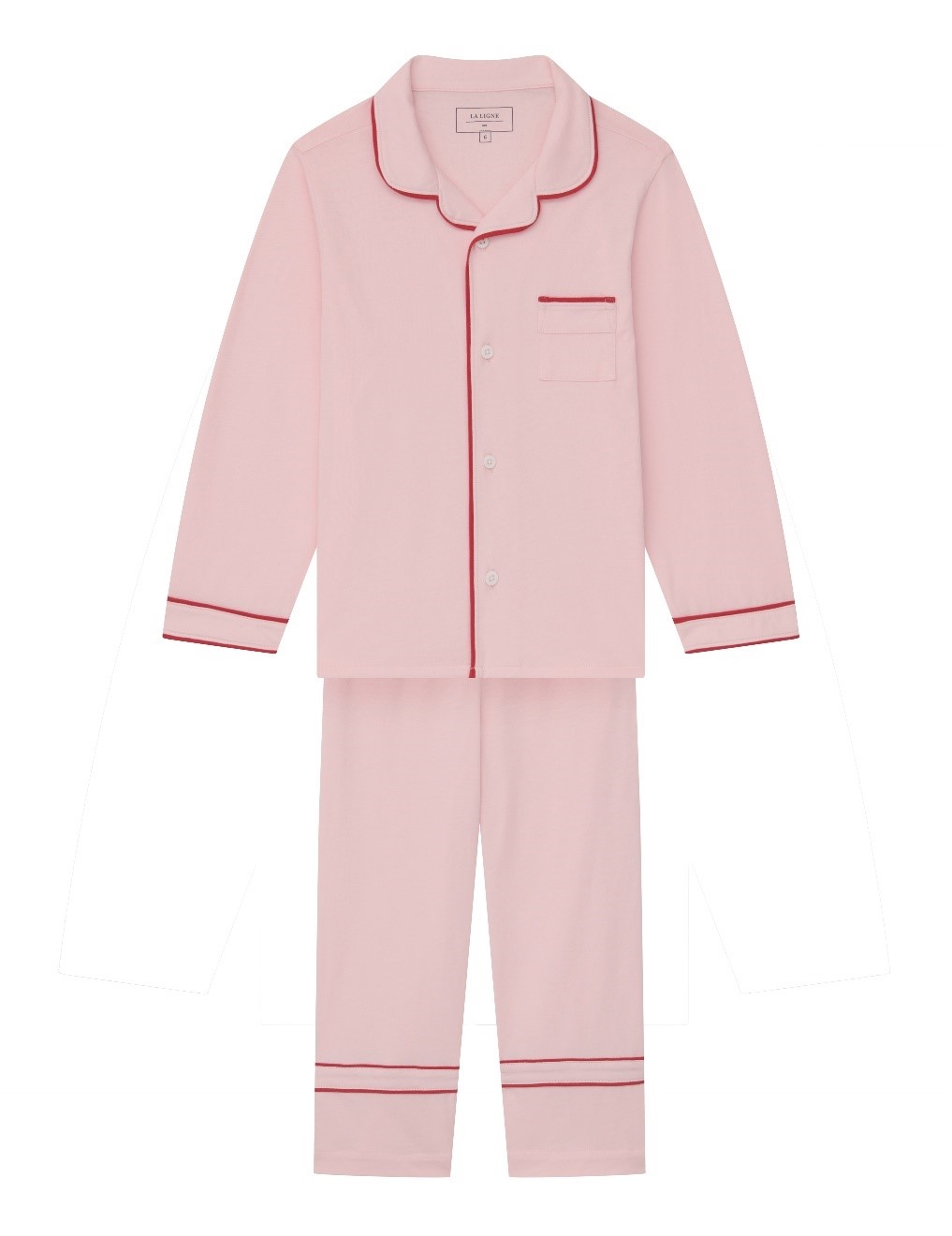 This recall involves La Ligne Enfant Bonne Nuit children’s 100% cotton pajamas. The two-piece long sleeve pajama sets were sold in green with light blue trim, pink with red trim, red with white trim, light blue with red trim, navy with white trim, and white with navy trim. There is a pocket on the left side of the top of the pajama sets. The pajamas were sold in sizes 2, 4, 6, 8 and 10. “La Ligne”, “Mini” and the size are printed on the neck label. The words “Made in Peru” and “RN number 150209” are printed on the seam label.