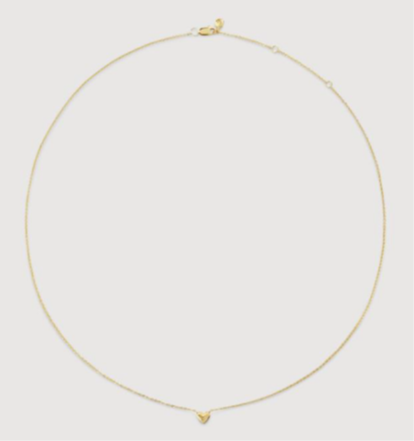 This recall involves Monica Vinader 14k Yellow Gold Mini Heart Chain Bracelets (SKU YG-BL-HART-NON), Necklaces (SKU YG-NK-HART-NON) and Stud Earrings (SKU YG-EA-HARS-NON). The recalled jewelry pieces are constructed of 14k yellow gold, contain mini heart pendants and were manufactured in October and November 2024. The chain bracelet measures about 15.3-19 cm, the necklace measures about 41-46 cm and the earrings each measure about .35 cm x 0.4 cm x 0.1 mm.