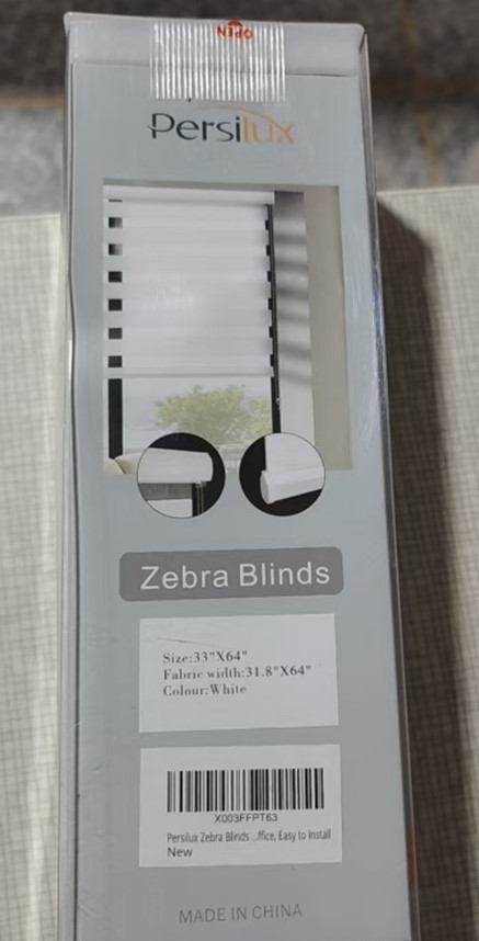 This recall involves Persilux-branded zebra blinds. The recalled stock blinds were sold in beige, black, dark gray, light gray and white, with sizes ranging from 22 to 73 inches wide and 64 to 72 inches high. “Persilux and “Zebra Blinds” is printed on the product packaging. “X003FFPT63” is printed on the barcode label.