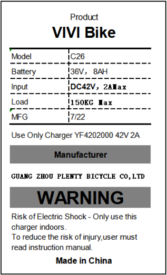 This recall involves 36-volt lithium-ion rechargeable batteries included with certain “VIVI” brand e-bikes. E-bike model information can be found on a consumer’s sales order documentation and on certain bicycle frames. Battery model information is located on the battery itself. “VIVI is printed on the bicycle downtube.