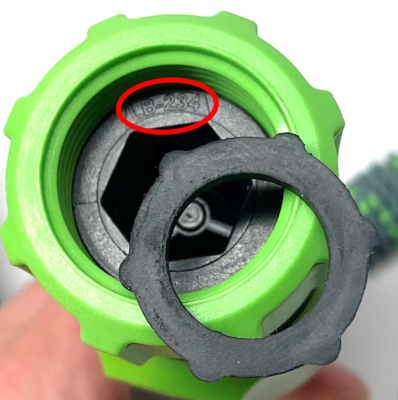 This recall involves HydroTech 5/8-inch Expandable Burst-Proof Hoses manufactured on or before August 31, 2024. The hoses were sold in lengths of 25, 50, 60, 75, 100 and 200 feet in various colors. Date code markings are located on the end of the hose that attaches to the spigot, visible when the black rubber washer is removed. Hoses with no markings or a marking ending in -211, -212, -213, -214, -221, -222, -223, -224, -231, -232, -233, -234, -241, -242 or -243 are included in this recall. On some hose packages, the manufacture date is listed in the month-year format. For example, 0824 is August 2024 and is included in this recall.
