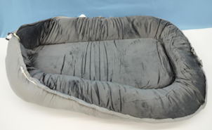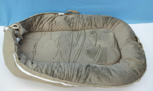 This recall involves BBWOO baby loungers. The recalled baby loungers are made of a foam sleeping pad and padded bumpers with a cloth cover and have a ribbon tie at one end. The model number is located on a tracking label stitched on the outside cover. The baby loungers were sold in the following styles and models: