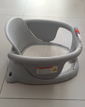 This recall involves CheerKid-branded baby bath seats. The recalled bath seats are sold in gray, pink and light blue. They come with five suction cups on the bottom and have a multi-colored rolling abacus toy at the front. “Model: BH-222” is printed on a label on the back of the bath seat.