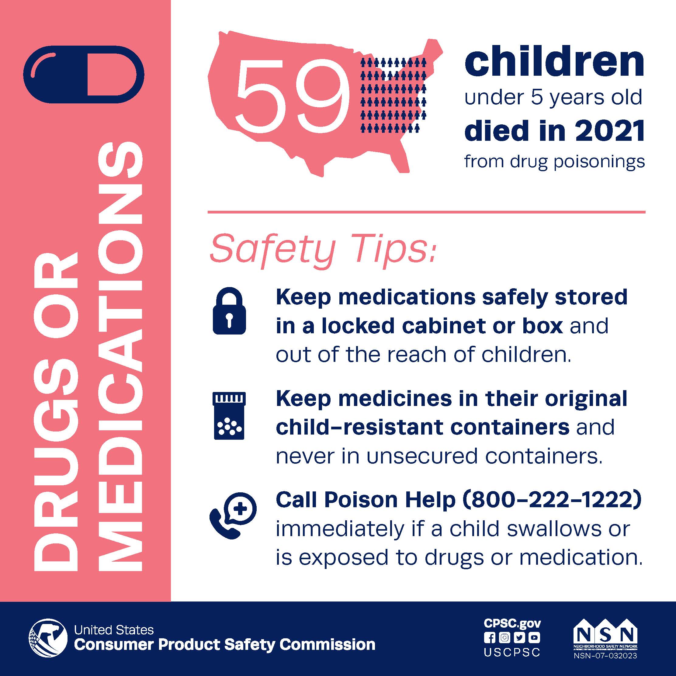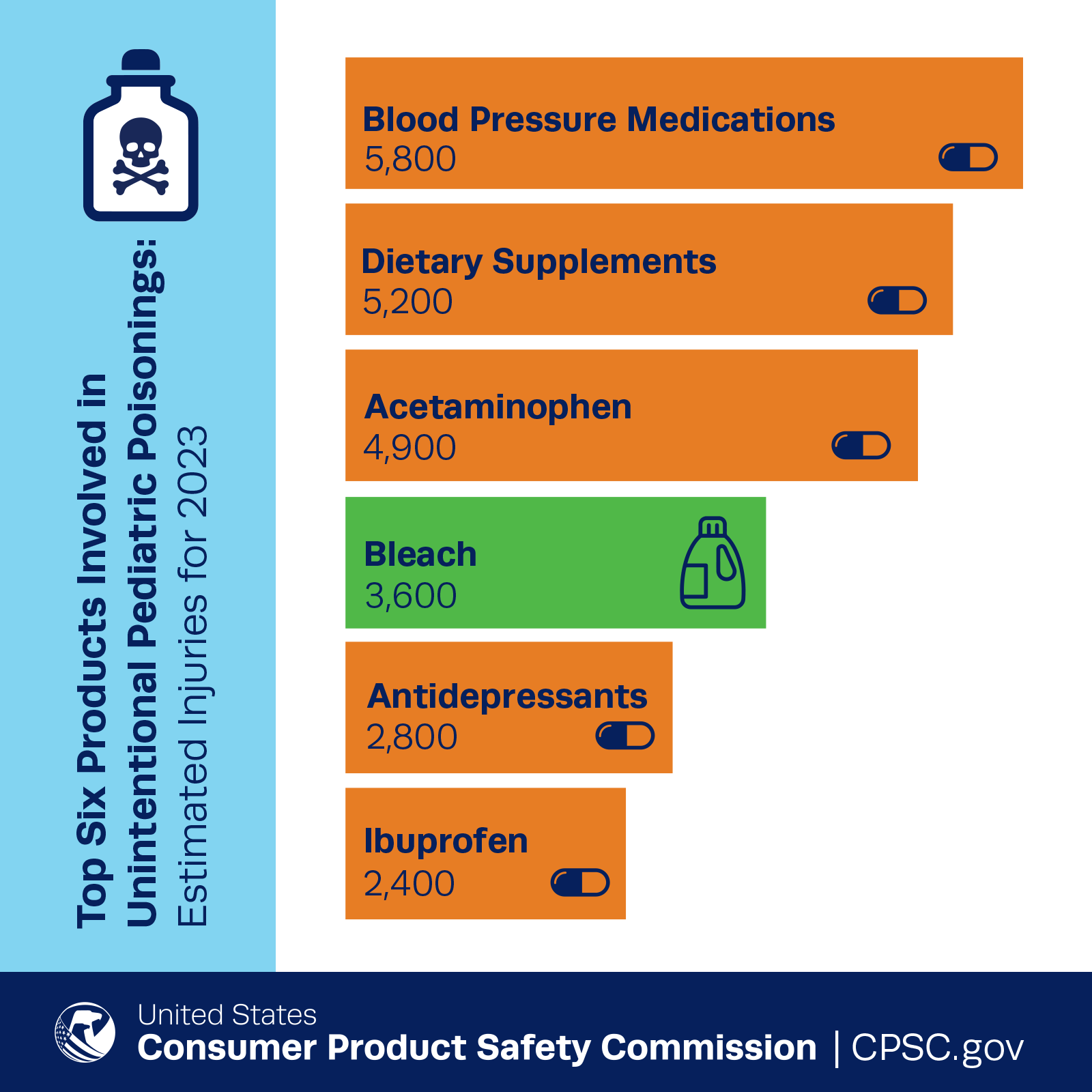 Nearly seven out of 10 poisonings occurred in the home. CPSC encourages family members and caregivers to identify hazards in the home that could be a poisoning danger and keep them out of a child’s sight and reach.