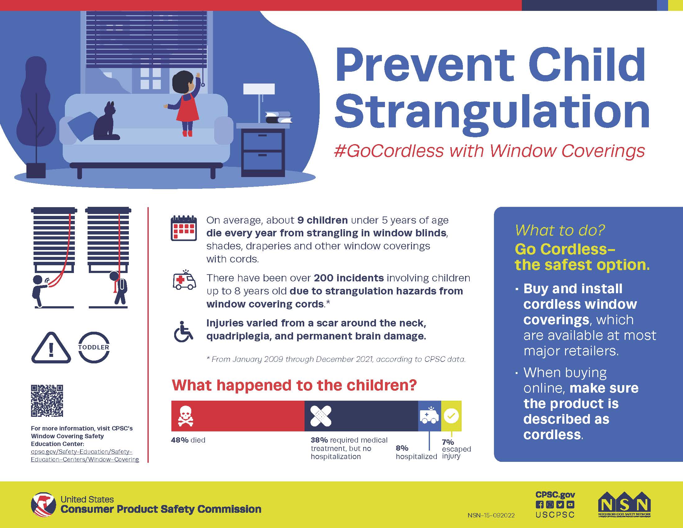 Remove hood and waist drawstrings from children’s jackets, sweatshirts and hoodies. Drawstrings can catch on items and cause a child to strangle.