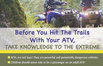Ride safe, ride smart. Wear a helmet, keep kids off adult ATVs, and take a hands-on training course. CPSC's tips for ATV safety.