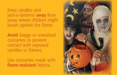 Prevent fires and burns. See and be seen. And make sure costumes are fit for safety.