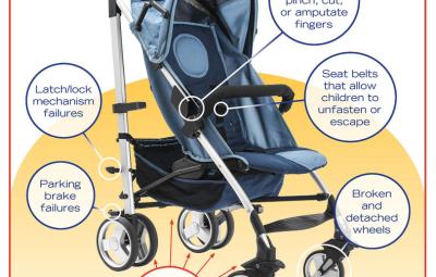 Use the safety harness whenever your child in a stroller. If not secured with the safety harness, your baby can slip through the opening between the seat and the tray and strangle.
