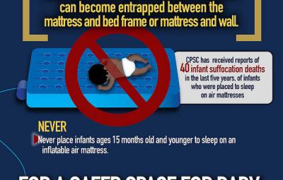 Air mattresses aren’t for babies. They are too soft and could cause babies to suffocate.