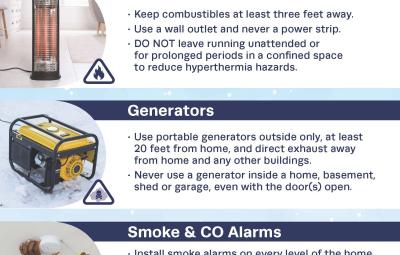 Do you use a portable electric space heater to warm a room? Make sure it’s at least three feet away from beds, sofas, curtains and other items that can burn. Turn the space heater off before you go to bed.