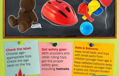 Check toys and other children’s products for plastic film coverings and remove them. The film can be a choking hazard.