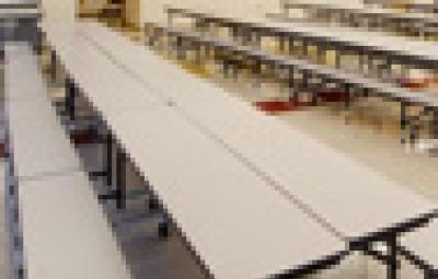 Keep kids away from mobile folding tables often found in school cafeterias. They can tip over and seriously injure or kill children.