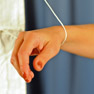 Never tie string, cords, necklaces, toys or anything around a child’s neck. They can strangle. Kids and cords of any kind don’t mix.