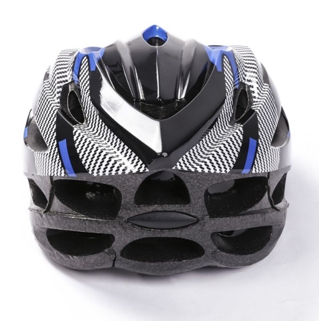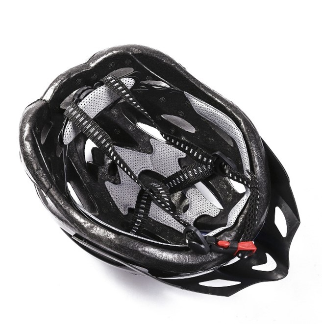 The bicycle helmets were sold online at www.walmart.com from March 2022 through November 2022 for about $13. The helmets were sold in size Large (L), fitting a head circumference of about 22 ½ to 25 inches. The helmets are black with blue accents, with black and white stripes, black straps and a red buckle. There is no labeling inside the helmet and no outer markings.
