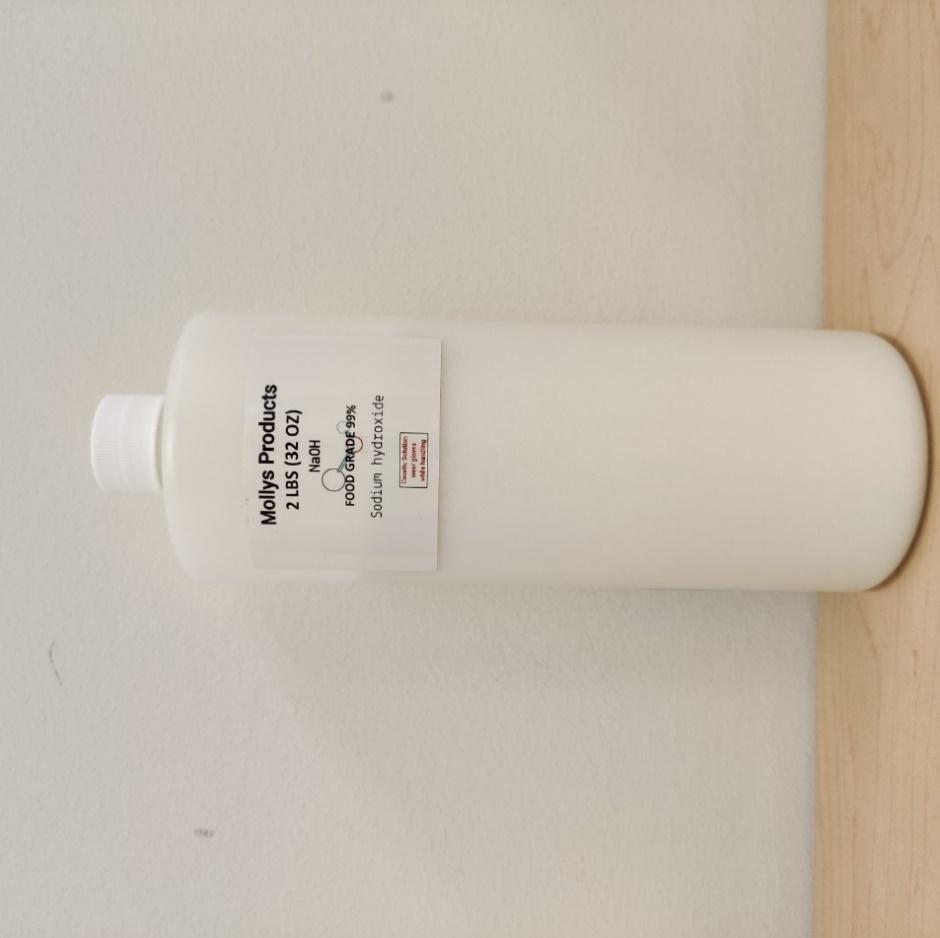 The Mollys Products’ sodium hydroxide products were sold online exclusively at www.walmart.com from March 2018 through March 2023 for about $15 for the 2-pound (32 ounces) bottle. CPSC evaluated the 2-pound (32 ounces) bottles and is aware Mollys Products also sold 5-pound (80 ounces) bottles. The white label on the products displays the brand name, bottle size, “NaOH,” “Sodium Hydroxide” and a warning to wear gloves. The 32-ounce bottles have “Food Grade 99%” on the label.