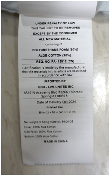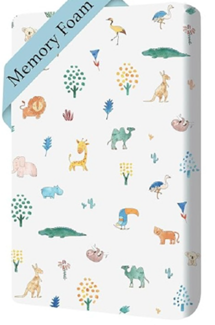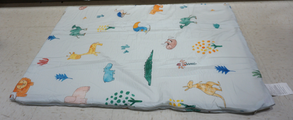 About 1,600 mattresses were sold online on Amazon from December 2024 through June 2025 for between $20 and $33. The mattresses are approximately 38 inches by 26 inches and have an Aloe cover with forest or animal themes. “IMPORTED BY UGK-LVM United Inc” can be found on a label attached to the cover. CPSC is aware the firm also sold a similar mattress with an off-white cover that includes stars, moons, clouds, rainbows, and other shapes in the pattern.