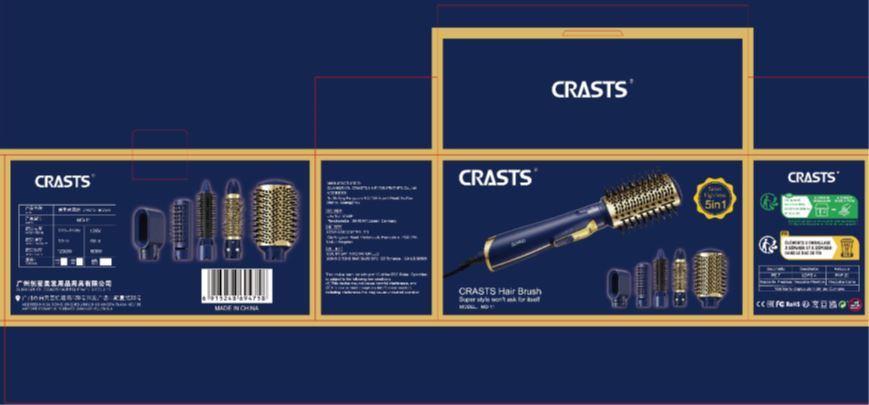 WASHINGTON, D.C. – The U.S. Consumer Product Safety Commission (CPSC) is warning consumers to immediately stop using Crasts 5-in-1 High Power Multi-Functional Curler and Straightener hair dryer brushes. The hair dryers, which lack an integrated immersion protection device, can cause death or serious injury due to electrocution and shock hazards. The hair dryers are in violation of the federal regulations for hair dryers and present a substantial product hazard.