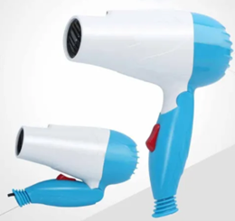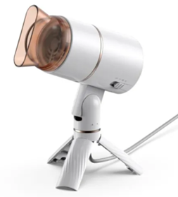 This warning includes three hair dryer models. The Blue Light Anion Electric hair dryer is black or purple. The label on the Blue Light Anion Electric dryer reads “FOCUSUN F7 2300W 220-240V 50HZ.” The High-power Household Mini Folding hair dryer comes in a blue and white color combination with a red switch. The Hands-free Hair Dryer with Tripod Stand is white with an orange transparent nozzle. The mini folding hair dryer and the hand-free hair dryers have no identifying markings or labels.
