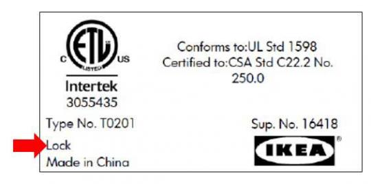 Este retiro del mercado incluye lámparas de techo Ikea HYBY y LOCK. Las lámparas vienen con pantallas de cristal en forma de domo en color blanco esmerilado y tres clips de plástico que afianzan la pantalla a la estructura de acero de la lámpara eléctrica. El modelo HYBY tiene una pantalla de 15 pulgadas de diámetro y viene decorada con cuatro líneas opacas concéntricas. La estructura de la lámpara sostiene dos focos. El modelo LOCK tiene una pantalla de 10 pulgadas de diámetro. La estructura de la lámpara sostiene un foco. El número de tipo y el nombre de modelo de cada lámpara se encuentran en una etiqueta adjunta a la estructura de la lámpara eléctrica. La lámpara HYBY lleva el número de tipo T1011 y la lámpara LOCK el número de tipo T0201.