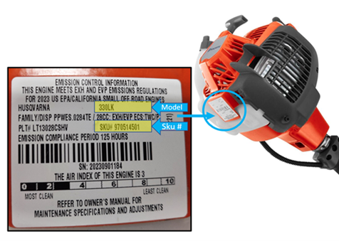 Este retiro del mercado abarca las desbrozadoras a gasolina para césped de Husqvarna que tienen los números de modelo 330LK, 130C y 130L. Las desbrozadoras son de color naranja y gris. "Husqvarna" y el modelo están impresos en la carcasa del motor. El número de SKU está impreso en la etiqueta del número de serie en la parte inferior de la carcasa del motor. Los números de SKU que se incluyen en este retiro del mercado son los siguientes: