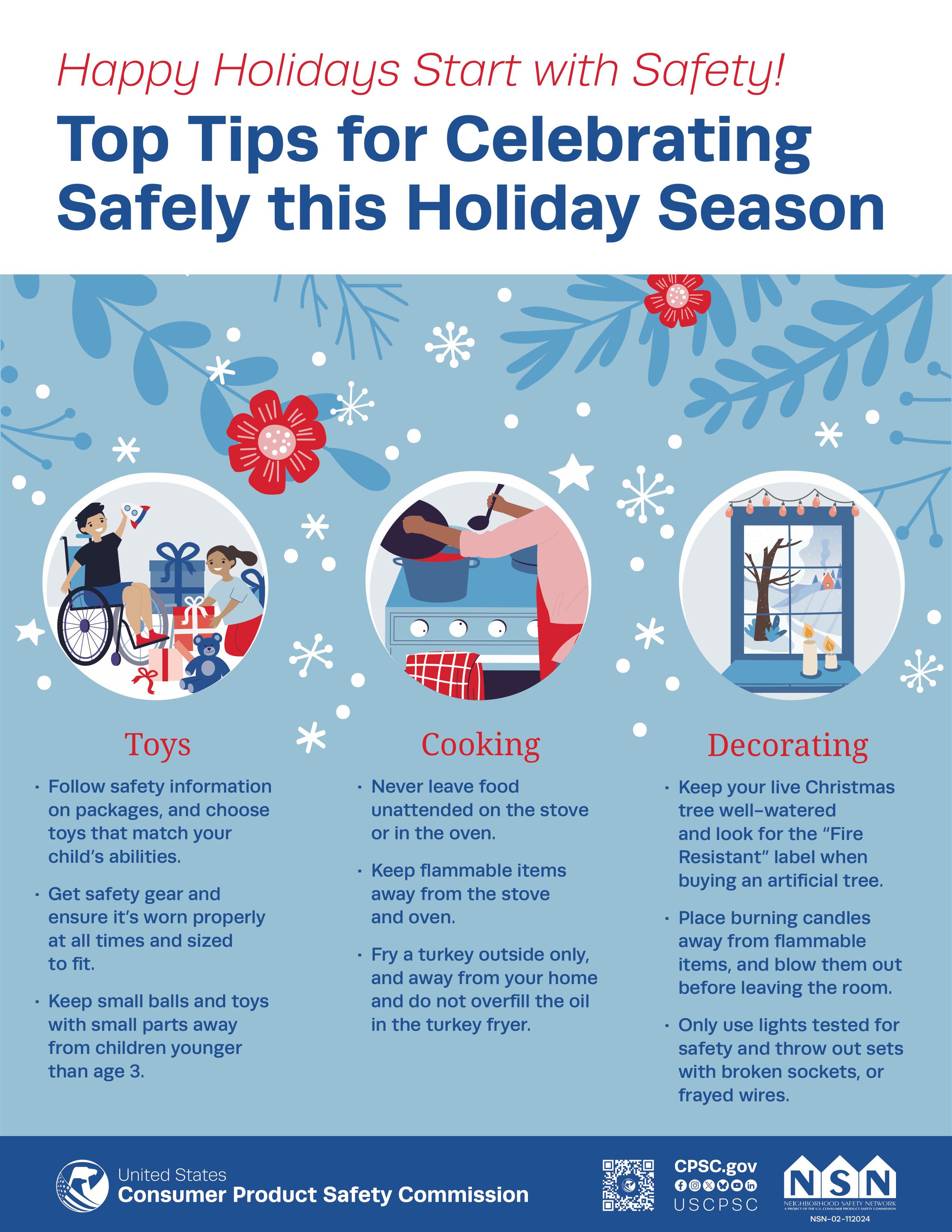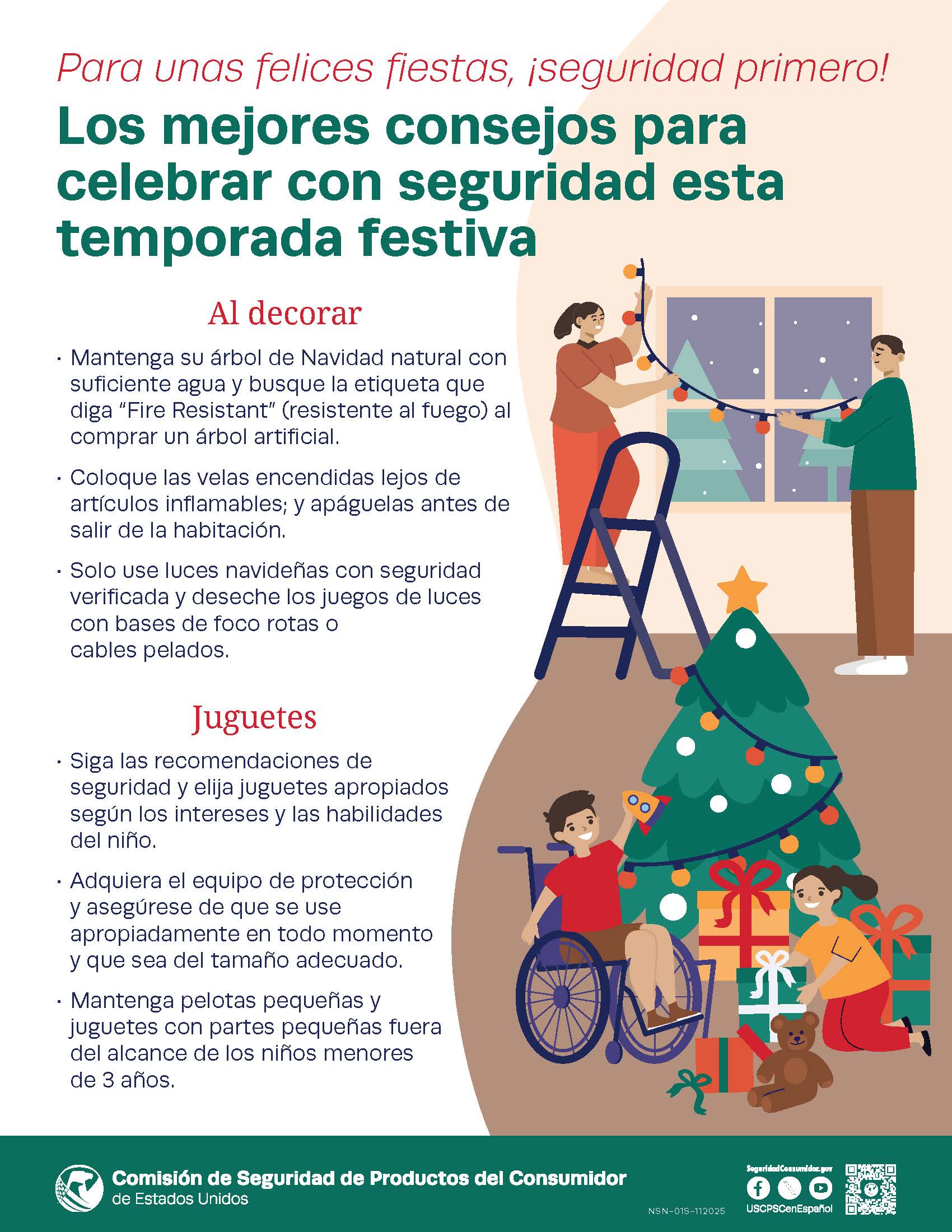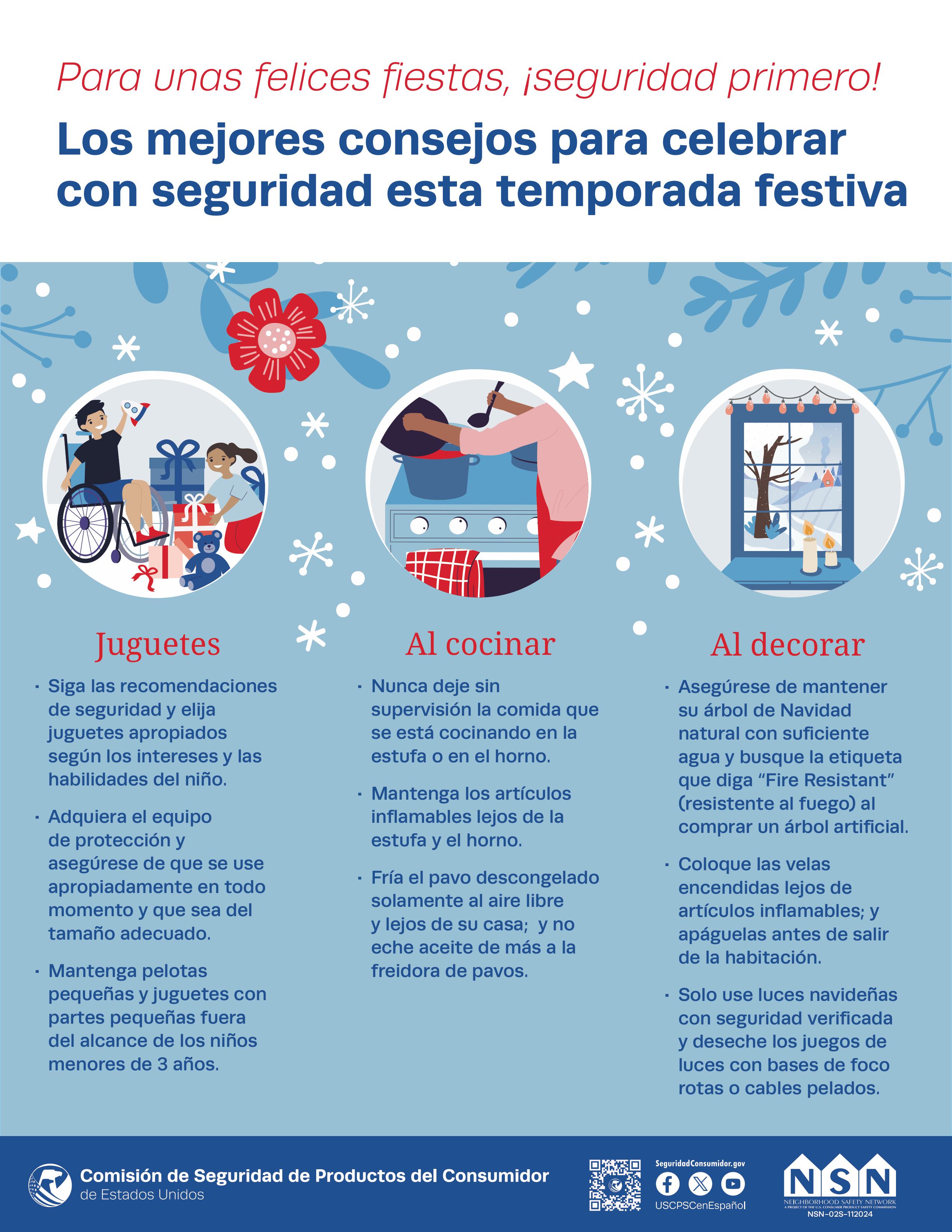 Proteja a sus seres queridos contra los peligros comunes relacionados con las fiestas comprando de manera segura en tiendas y comercios en línea confiables. Al comprar para niños pequeños, manténgase atento para prevenir lesiones y muertes relacionadas con juguetes. Y al escoger decoraciones navideñas proactivamente tome medidas de seguridad.