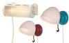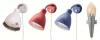 White tubular reading lamp with white metal sides White domed reading lamp with turquoise metal base White domed reading lamp with red metal base |
