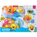 The recalled Mini Baby Shark bath toys swim when placed in water but do not sing. They have a hard plastic top fin, measure about 4-inches from nose to tail and were sold in three colors: yellow, pink and blue. They were sold individually, in packs of two or three, and as part of a Baby Shark Music Water Park playset. The recalled mini-size bath toys have tracking label information on the bottom, including raised lettering that states model numbers “#7163,” "#7175,” “#7166,” or “#25291” and a date code beginning with the letters “DG” followed by “YYYY/MM/DD” in the date range DG2020615 through DG2023525.